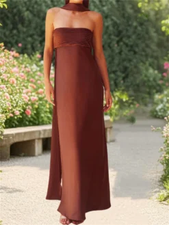 Summer Women’s Beach Dress Solid Color Sleeveles