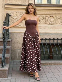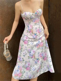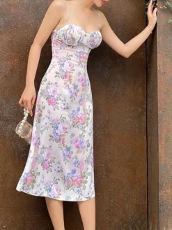 Women Sling Dress Spaghetti Straps Low-cut Flower