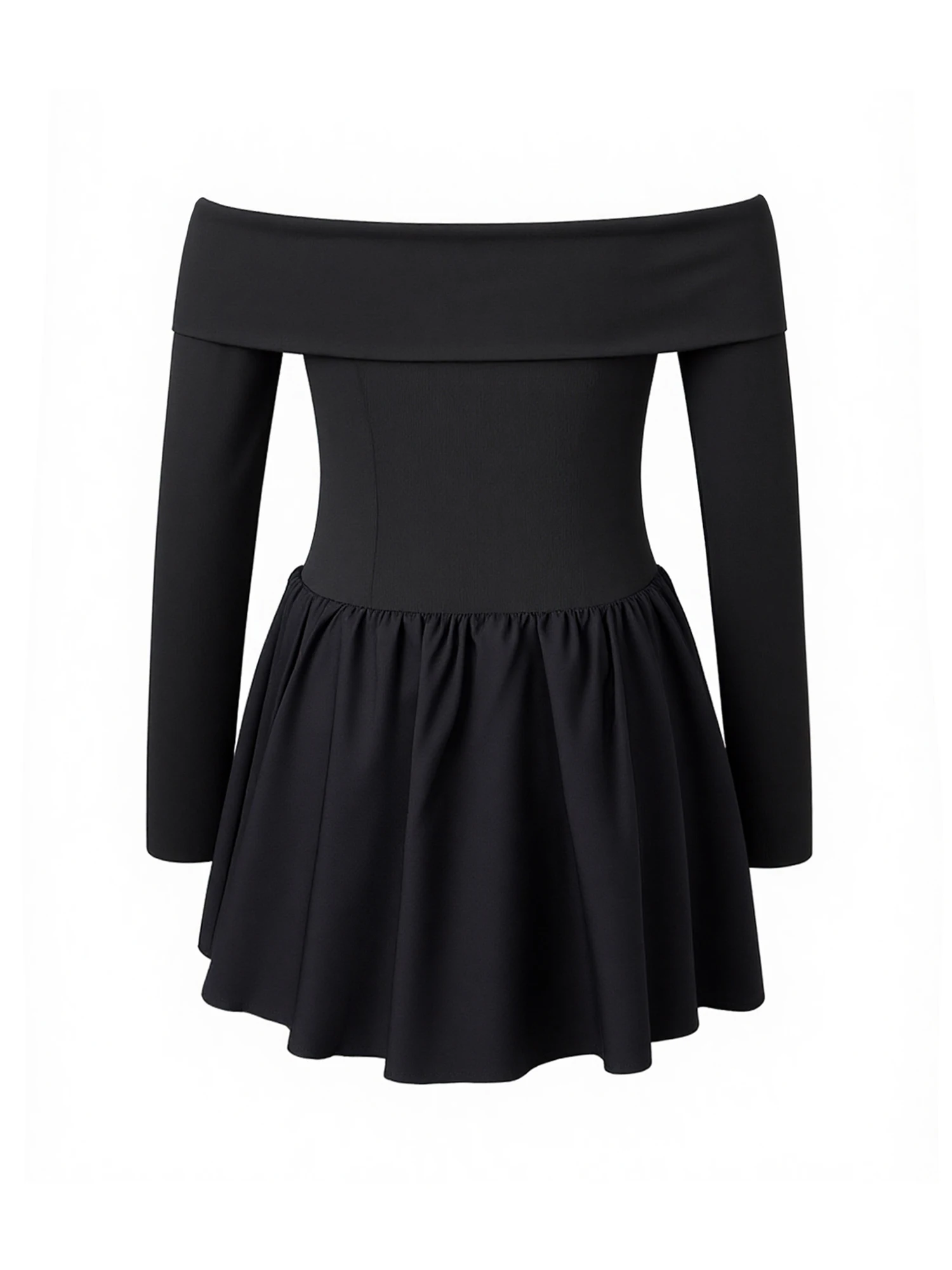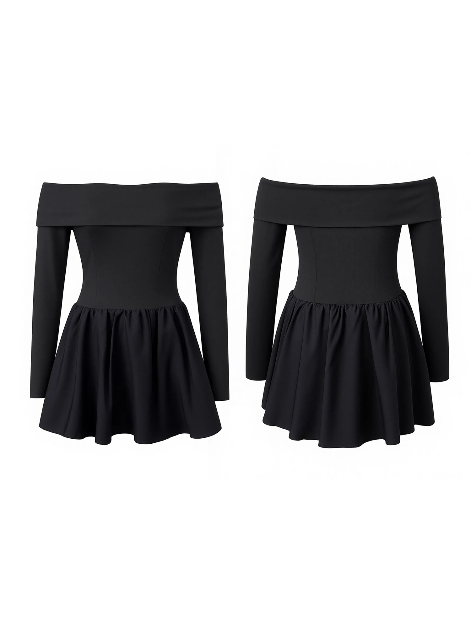 Women's Off the Shoulder Dress Stylish Solid Color Long Sleeve A Line Mini Dress for Fall